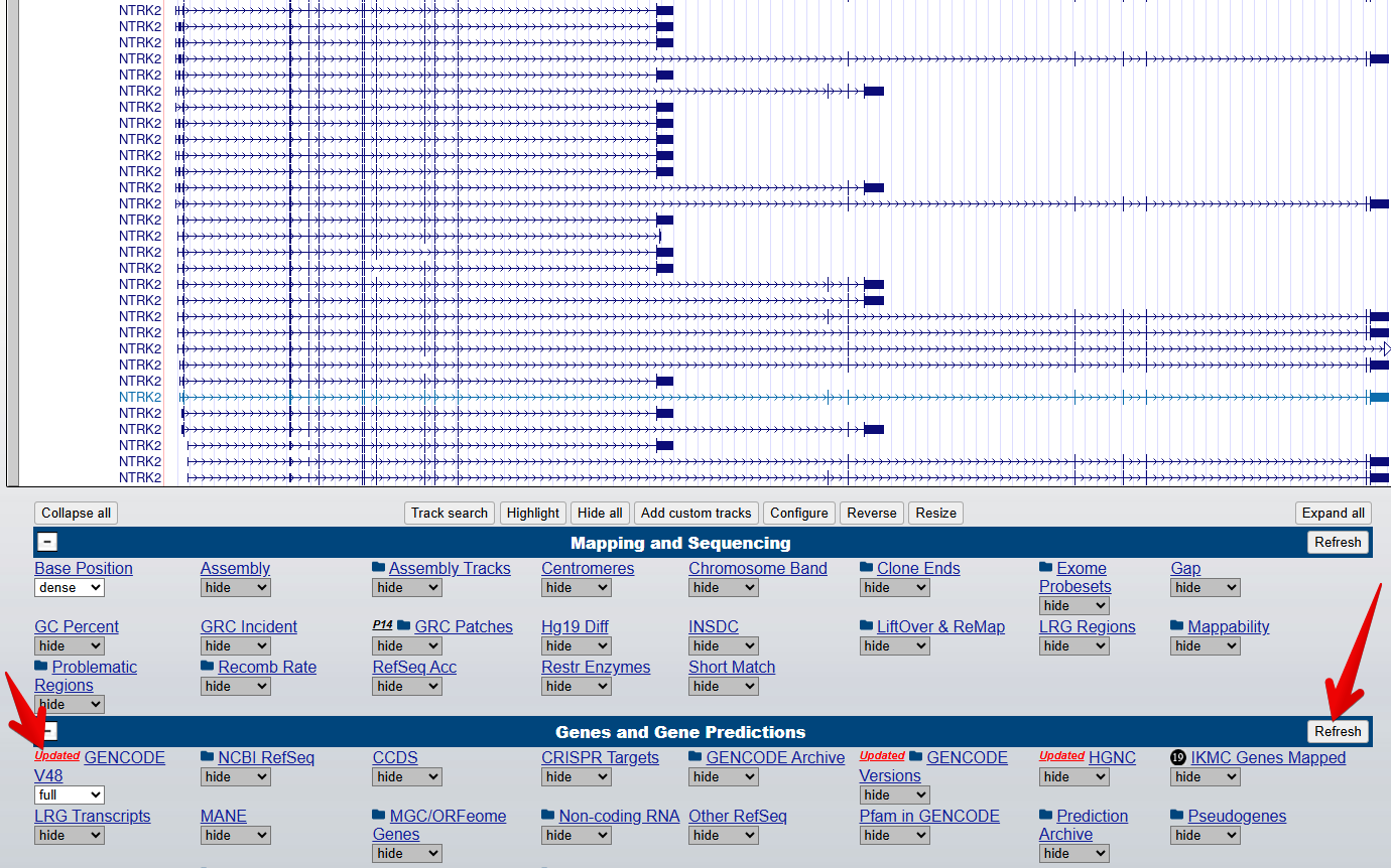 Genes and Gene predictions, set GENCODE V48 to