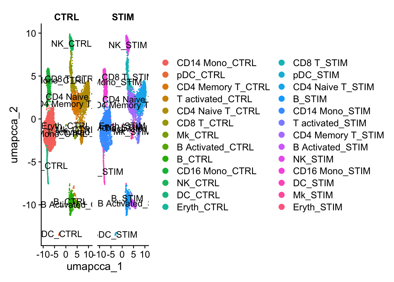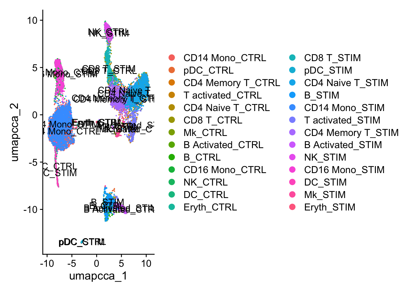 We’re using the ifnb public dataset provided by Seurat. This dataset contains PBMC data from 8 lupus patients before and after interferon beta treatment.