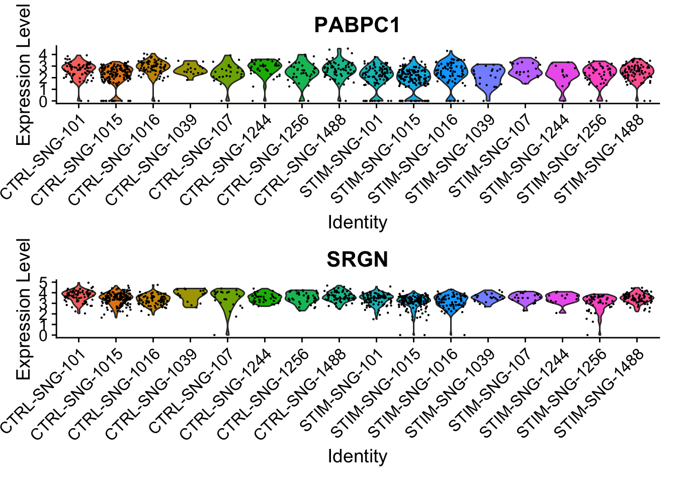 VlnPlot(ifnb.filtered, features = c("PABPC1", "SRGN"),