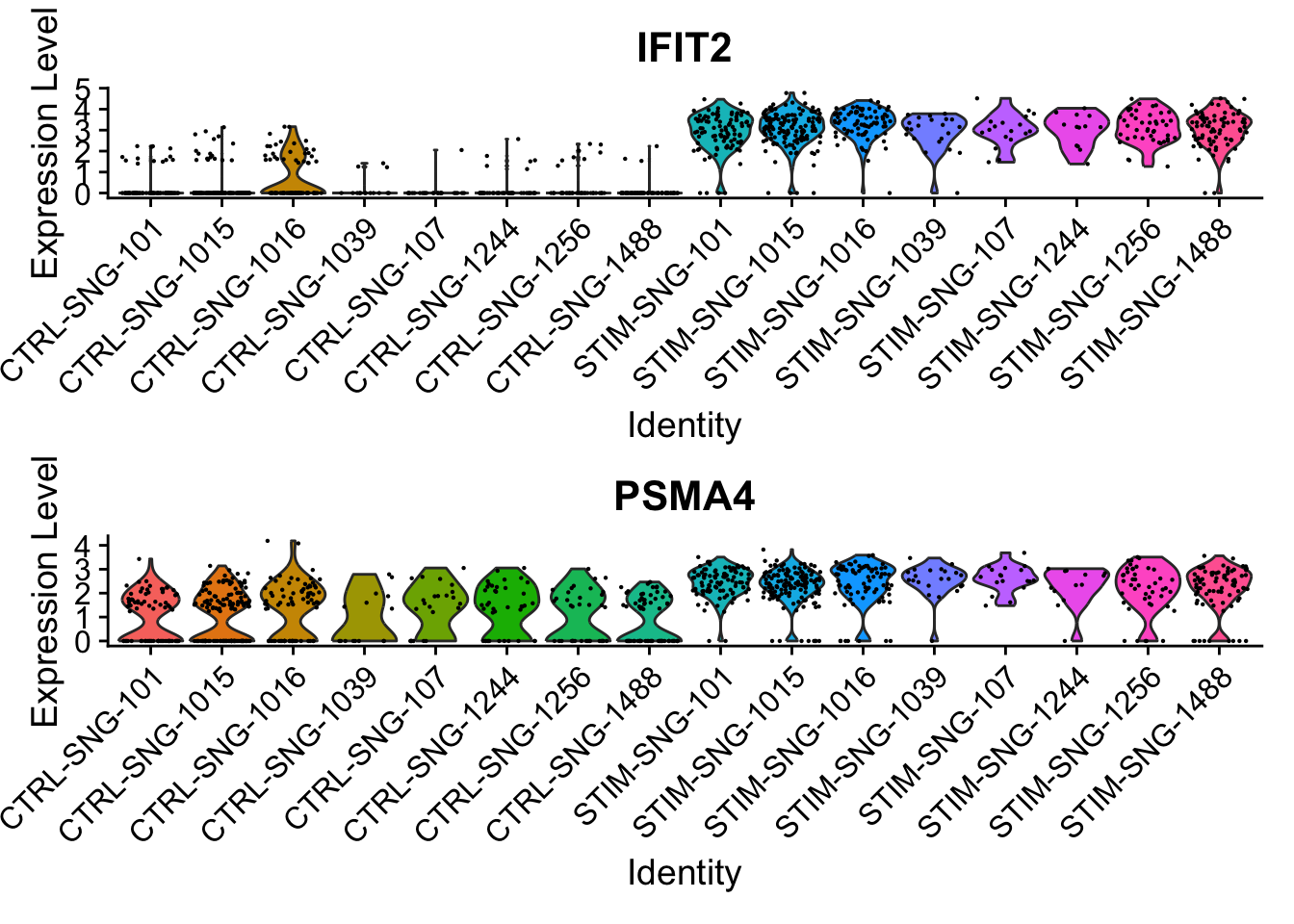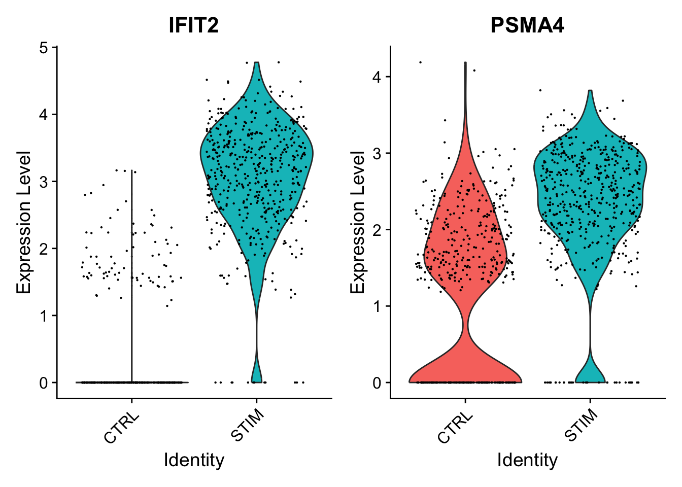 VlnPlot(ifnb.filtered, features = c("IFIT2", "PSMA4"),